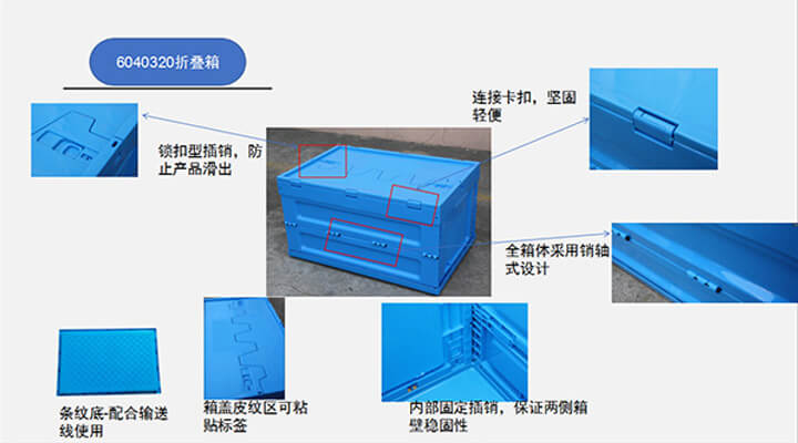 折疊箱采用國際流行款式,根據(jù)折疊方式的不同,有對折式和內(nèi)倒式兩種折疊方法,折疊后的體積只有組立時體積的1/4-1/3,具有重量輕、占地少、組合方便等優(yōu)點。已在各大連鎖超市、24小時便利店、大型配送中心、百貨商場、輕工、服裝、家電、食品加工等閉環(huán)回路配送系統(tǒng)中廣泛使用。對折式折疊周轉(zhuǎn)箱有400×300mm、600×400mm、650×440mm、530×365mm四個系列10多種規(guī)格。和1210型國際標準、1208型歐洲標準或1111型日本標準托盤配合,可實現(xiàn)機械化搬運,提高了流通合理化、效率化,使用戶儲運成本大大降低。是一種符合現(xiàn)代企業(yè)推行環(huán)保要求及零庫存計劃的新型產(chǎn)品